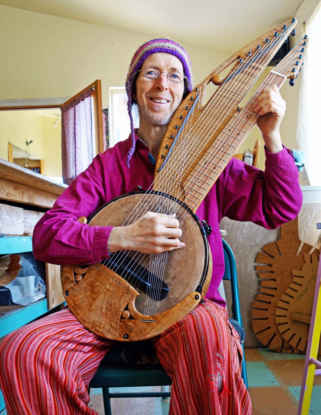 Fred shares his path into instrument making—from early sculptural dulcimers with mentor Ken Ripartella, to studying with Charles Fox, to building in communal workshops surrounded by musicians, woodworkers, and fellow artists. Fred also shares his thoughts on inspiration and reflects on appreciating a charmed life.