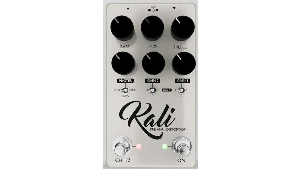 The aptly named Kali distills elements of the Fortin Cali—a Plexi-inspired amp—into a 2-channel pre-amp and distortion pedal. Each channel has three gain modes—vintage, raw, and saturation—which are selectable via a mini toggle. And each mode has a very distinct vibe, which could be loosely categorized as low-end-heavy, midrangey, and high-gain-centric, respectively.